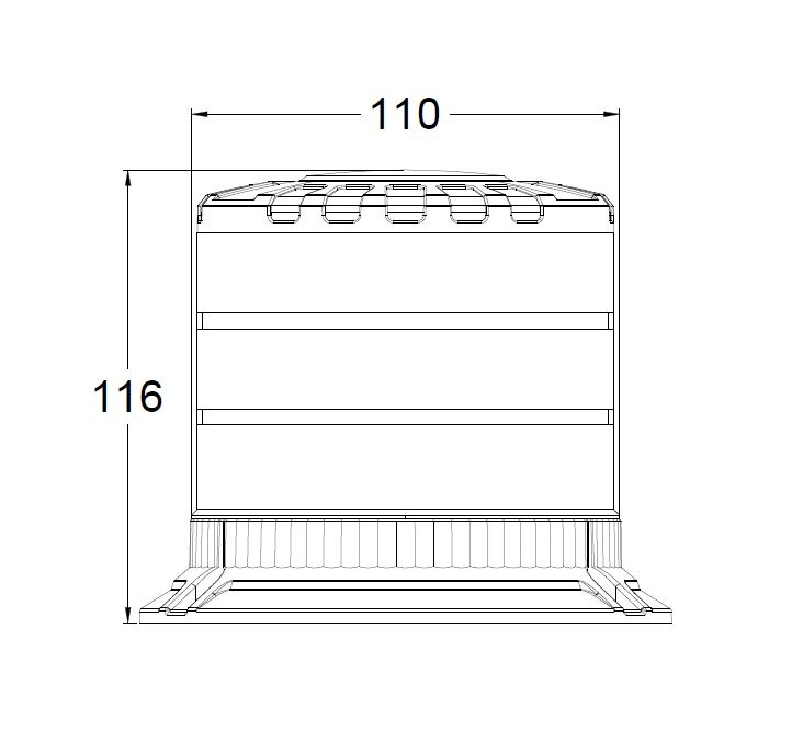 • rozměry: průměr základny 136 mm, průměr krytu 110 mm, výška 116 mm